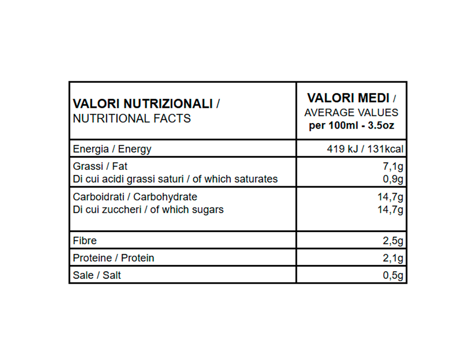 Pomodori 58% (Solanum lycopersicum-Italia), olio di girasole 40% (Italia), acqua, aceto di vino 0.6% (Italia), sale 0.5% (Italia), origano 0.5% (Italia), aglio 0.4% (Italia).