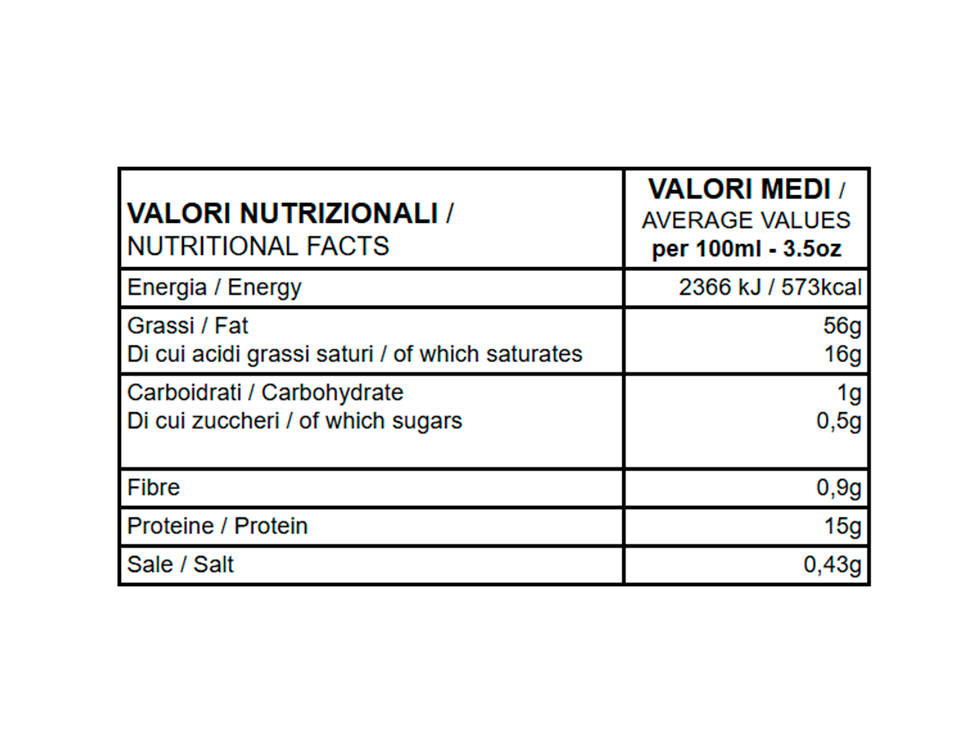 Conservare chiuso in luogo fresco ed asciutto. Dopo l’apertura conservare a +4 ֯C e consumare entro 3-4 giorni.